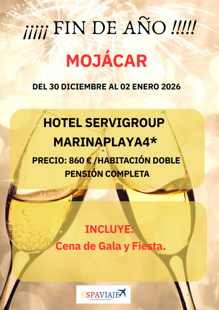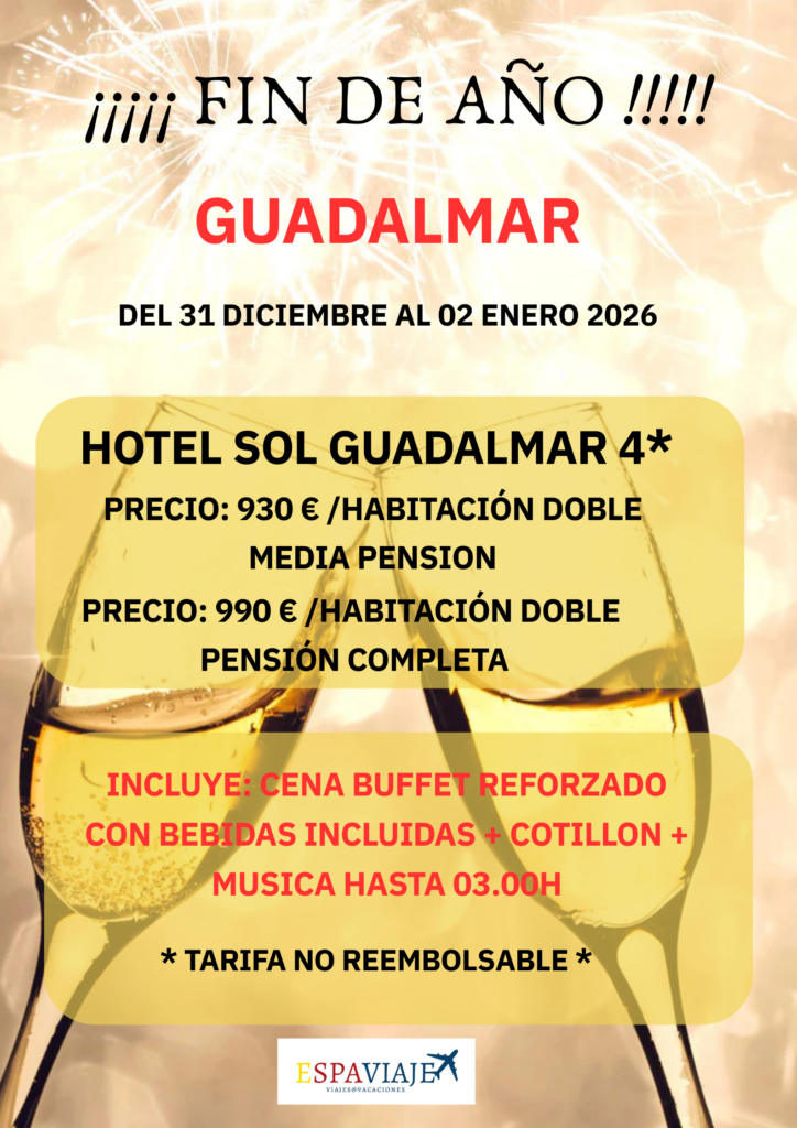 DEL 31 DICIEMBRE 2025 AL 02 ENERO 2026 PRECIO POR PERSONA: 425 € / MEDIA PENSIÓN / TARIFA NO REEMBOLSABLE ** PRECIO POR PERSONA EN...