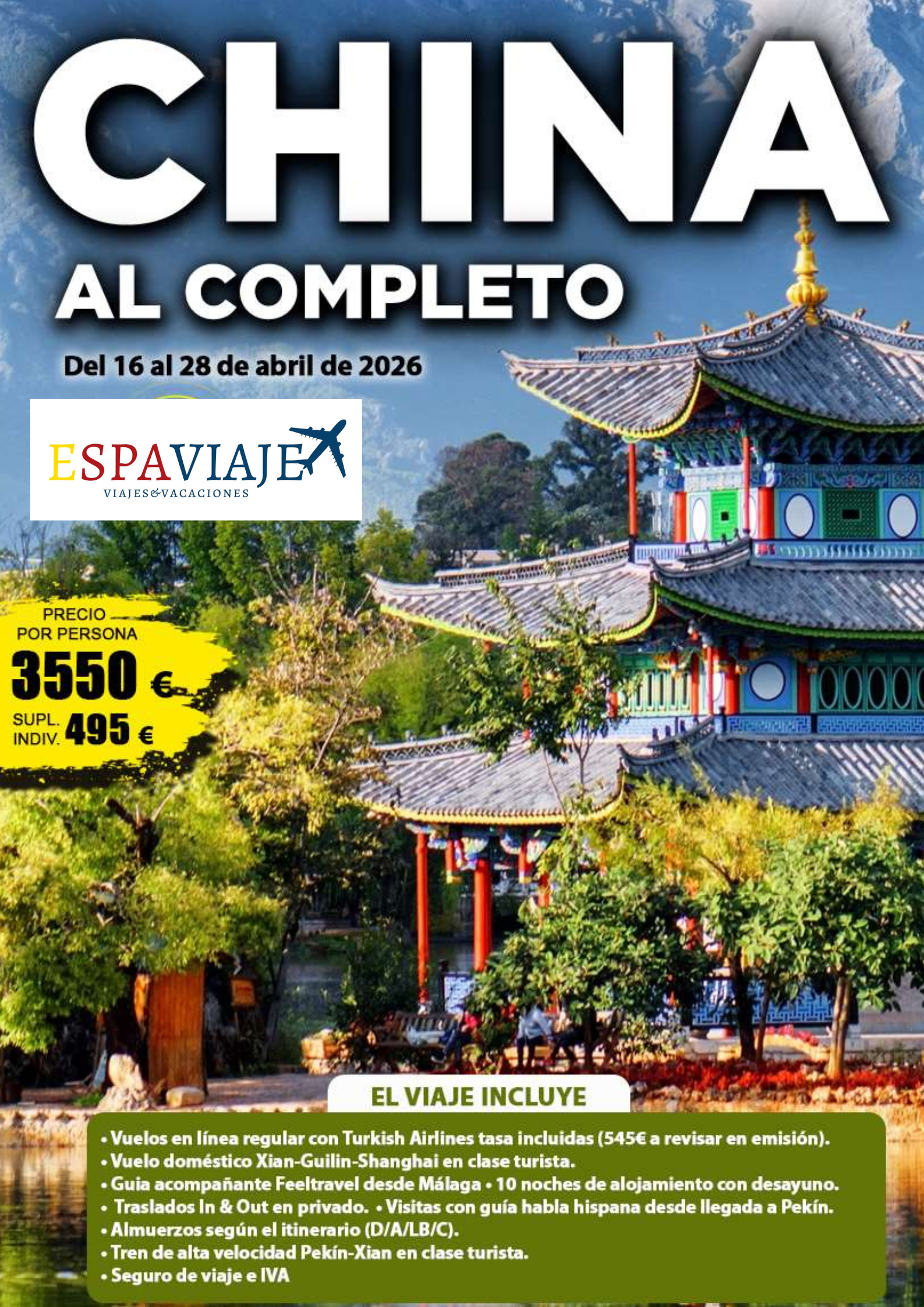 - • Vuelo doméstico Xian-Guilin-Shanghai en clase turista.